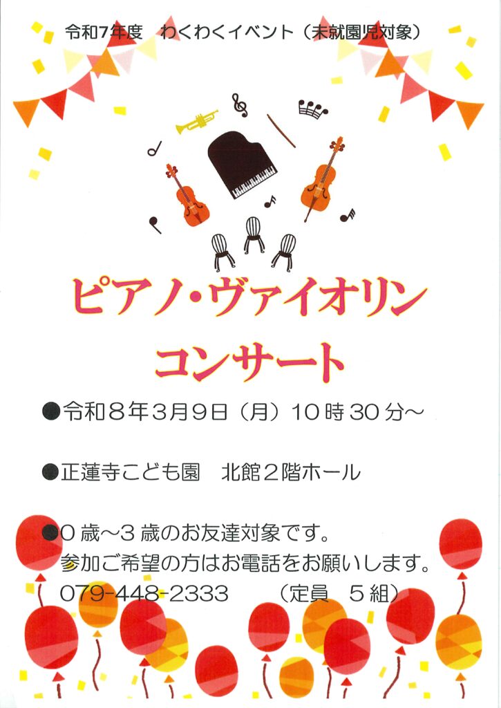 ・3月9日(月) ピアノ・ヴァイオリンコンサート 10:30-