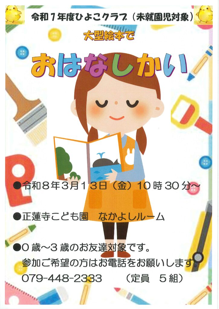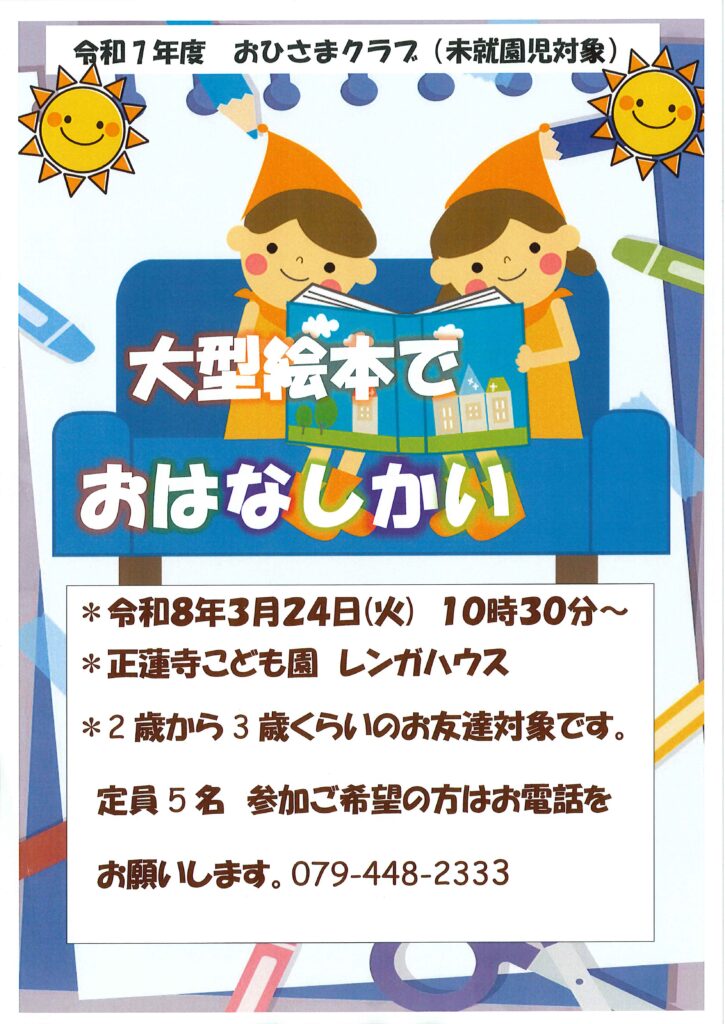 参加ご希望の方はお電話で予約をお願いします。 079-448-2333