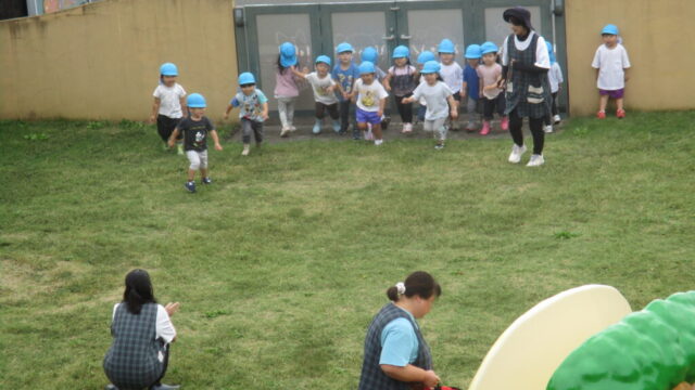 2歳児 ビーバー組 ルールのある遊びを楽しんでいました。「だるまさんが転んだ」でとまることがなかなか難しそうでしたが、子どもたちで知らせあったり、【しまった‼】と …
