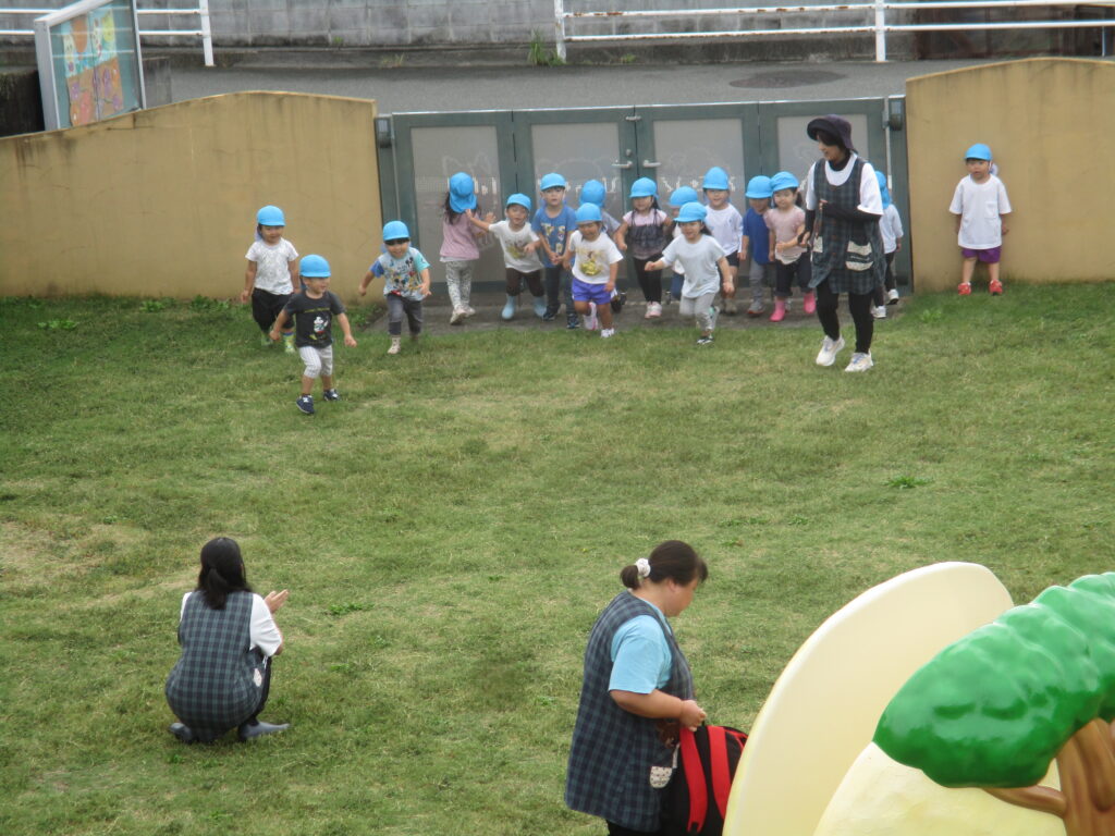 ルールのある遊びを楽しんでいました。「だるまさんが転んだ」でとまることがなかなか難しそうでしたが、子どもたちで知らせあったり、【しまった‼】といった表情で気づく子もいたようです。繰り返す中で楽しめそうです
