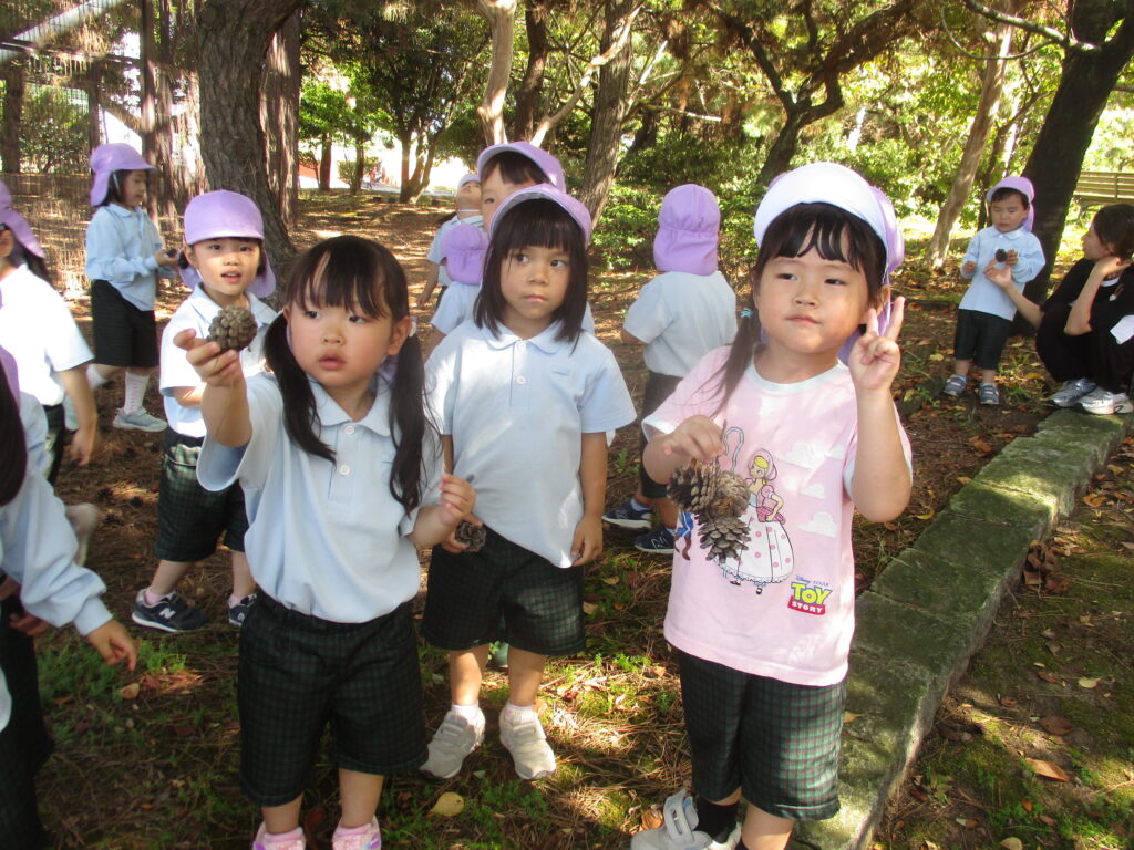 園バスで遠足へ行ってきました。初めて遠足にお出かけした子どもたち。公共のルールに触れたり、秋見つけをしたり、海の上に船を見つけたりととても刺激があって楽しい一日を過ごすことができました