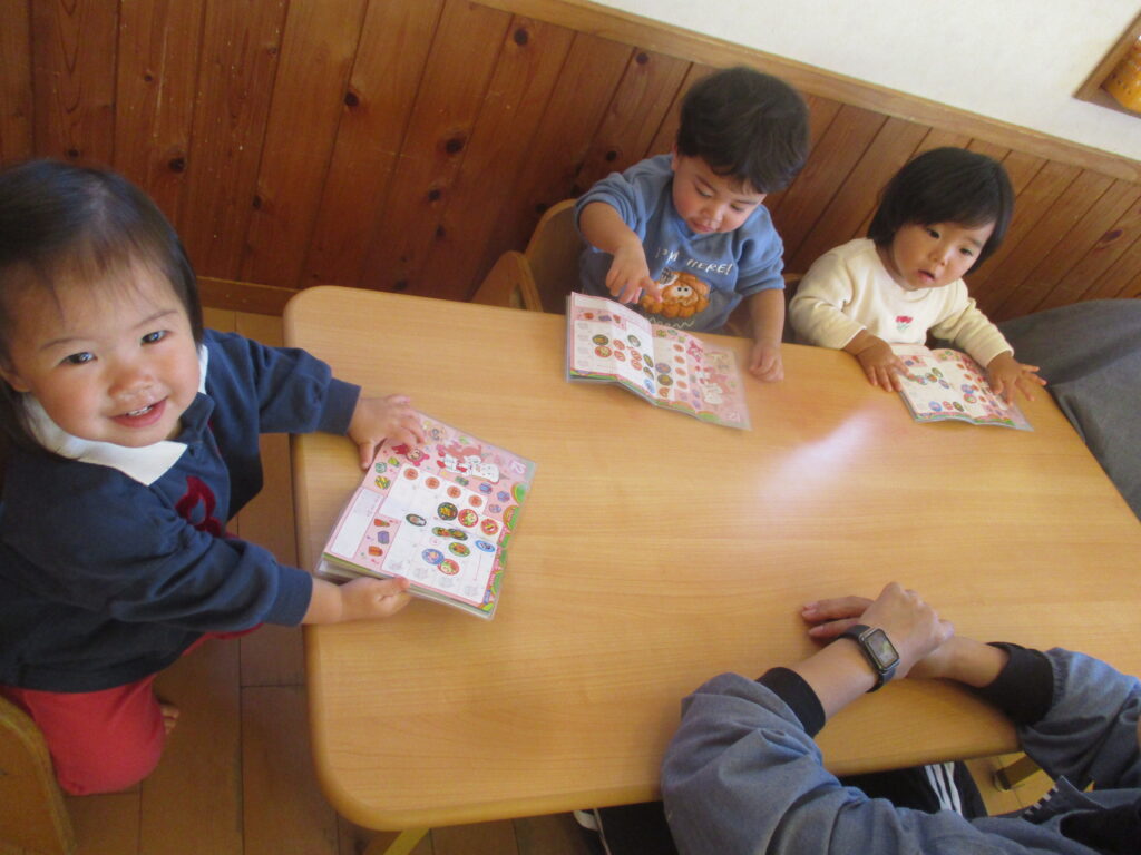 シール上手にできたよ身体もしっかりしてきて指先も少しずつ使えるようになってきたポッポさん。指で摘まんでシールを貼っていました。集中してお目当てのところへペタッ!ときれいに貼れました