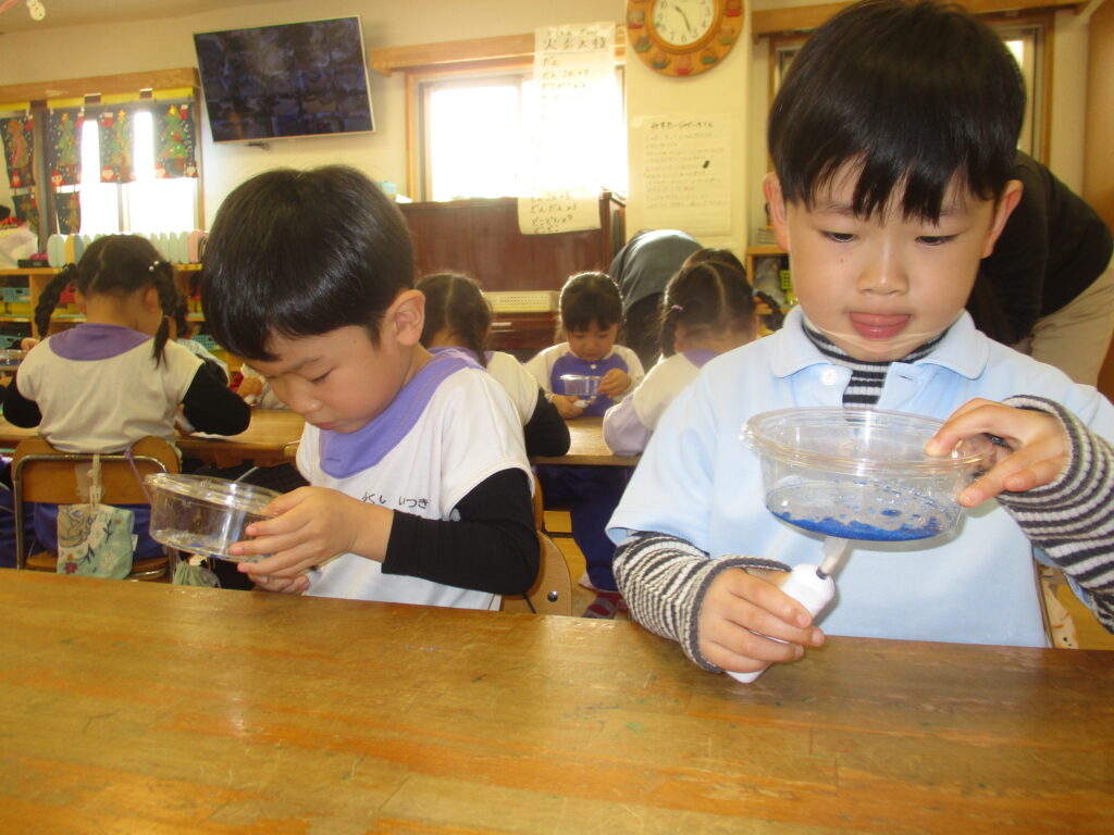 ブルブル震えるよ学研かがくで振動について不思議を体験しました。電動消しゴムの振動を利用して砂が集まったり、動くことを体験し、実験を繰り返していました