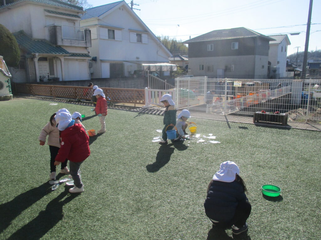 冬ならではの遊びここのところの寒さで氷で遊べることを知ったビーバーさん。割ったり、透かして物を見たり、解けかけの氷に仕掛けをして次の日に凍らせたりと自然を利用して楽しんでいます。
