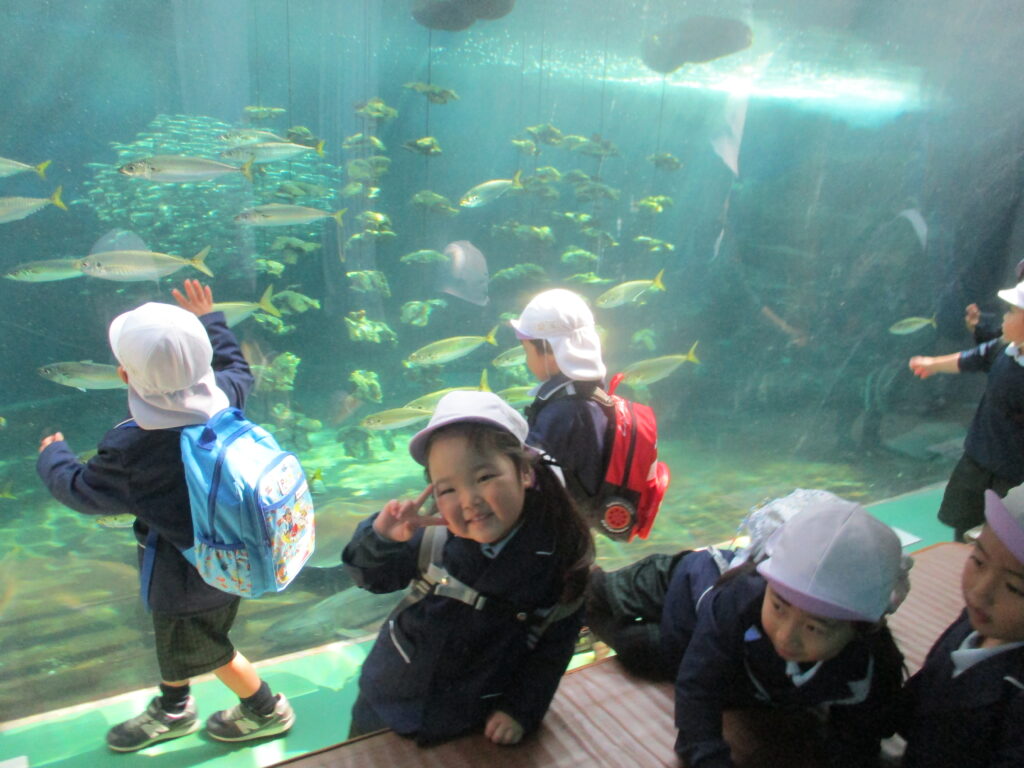 遠足行ってきました姫路の水族館へ遠足に出かけました。行ったことある!見たことある!と大賑わいでしたが、お家の方とではないお出かけは違った楽しみがありました。『あれなんやろな?』『骨ちゃうん?』標本も懸命に見入っていました。