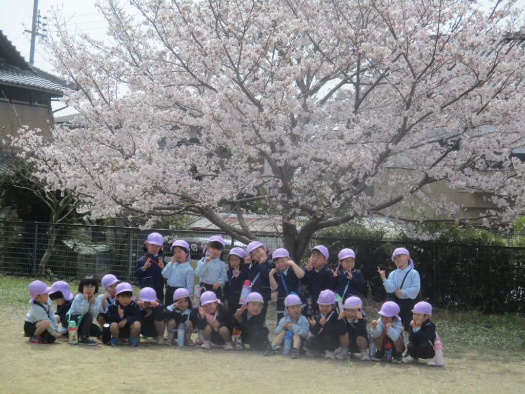 みんなで揃ってハイ!チーズ!桜の下で記念の1枚。『1年間よろしくね』とご挨拶のあとの写真撮影でした。